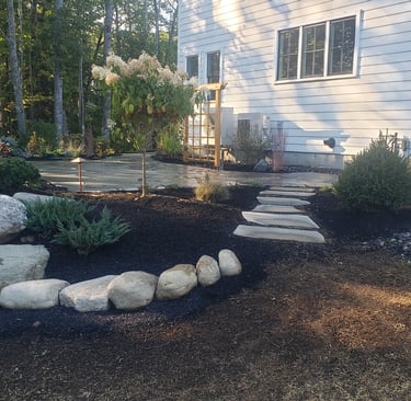 Earth & Turf Landscape Solutions offers a variety of landscape services including custom landscape design, garden design, hardscaping including patios, walkways, retaining walls, and sea walls as well as lawn/sod installation, turf applications, lawncare maintenance, garden maintenance, irrigation installation/repair, landscape lighting, mulching and edging services, spring/fall cleanups, tree removal, stump grinding, tree and shrub trimming, tree and shrub plantings, flower plantings, field mowing, brush hogging, grading driveways, and driveway installations.